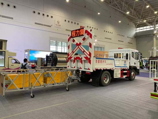 其中,程力公司自主研发的防撞缓冲车,用于高速路维修施工,它可以吸收两吨每小时120公里的撞击力,来保障高速上施工人员的生命安全。